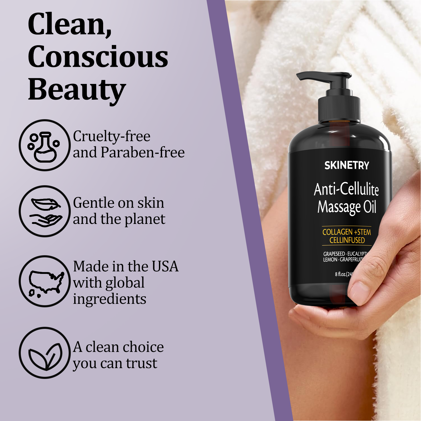 Made with lightweight grapeseed oil, the formula absorbs quickly into the skin while providing excellent glide for massage, without leaving a heavy or greasy feel.